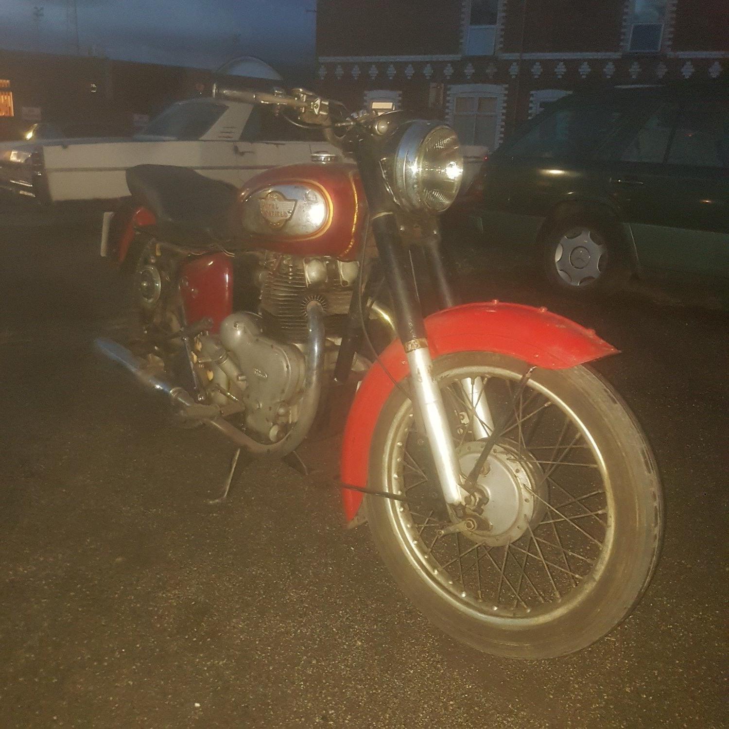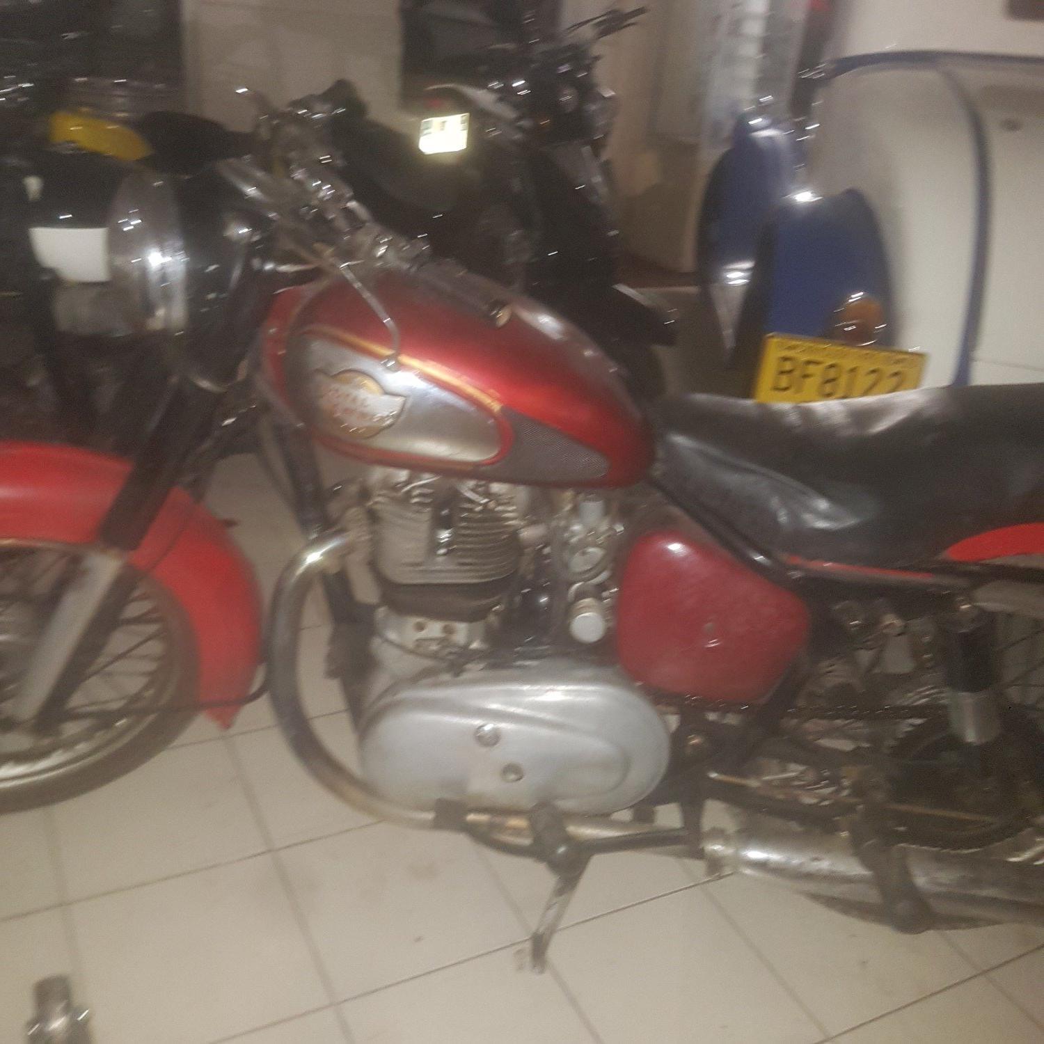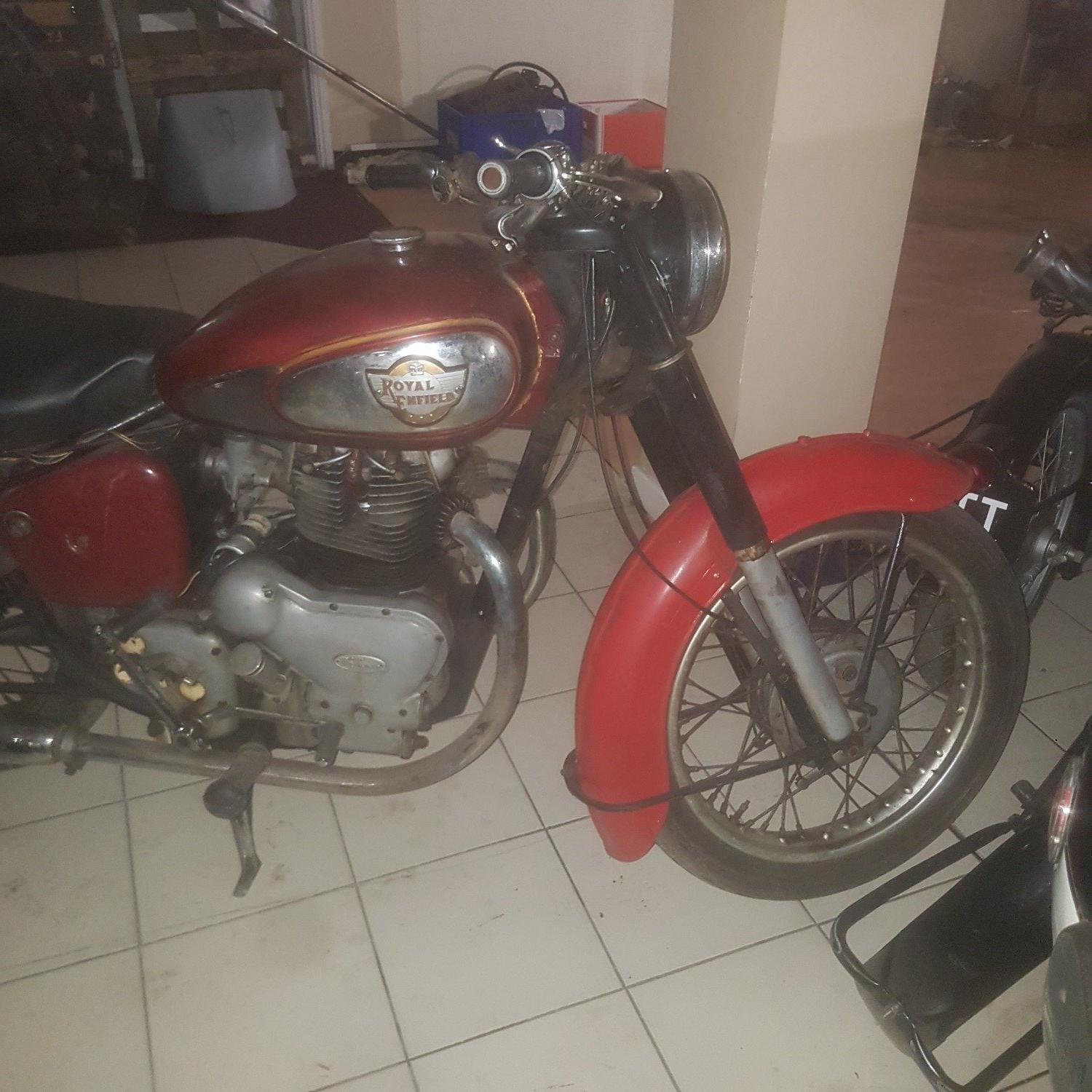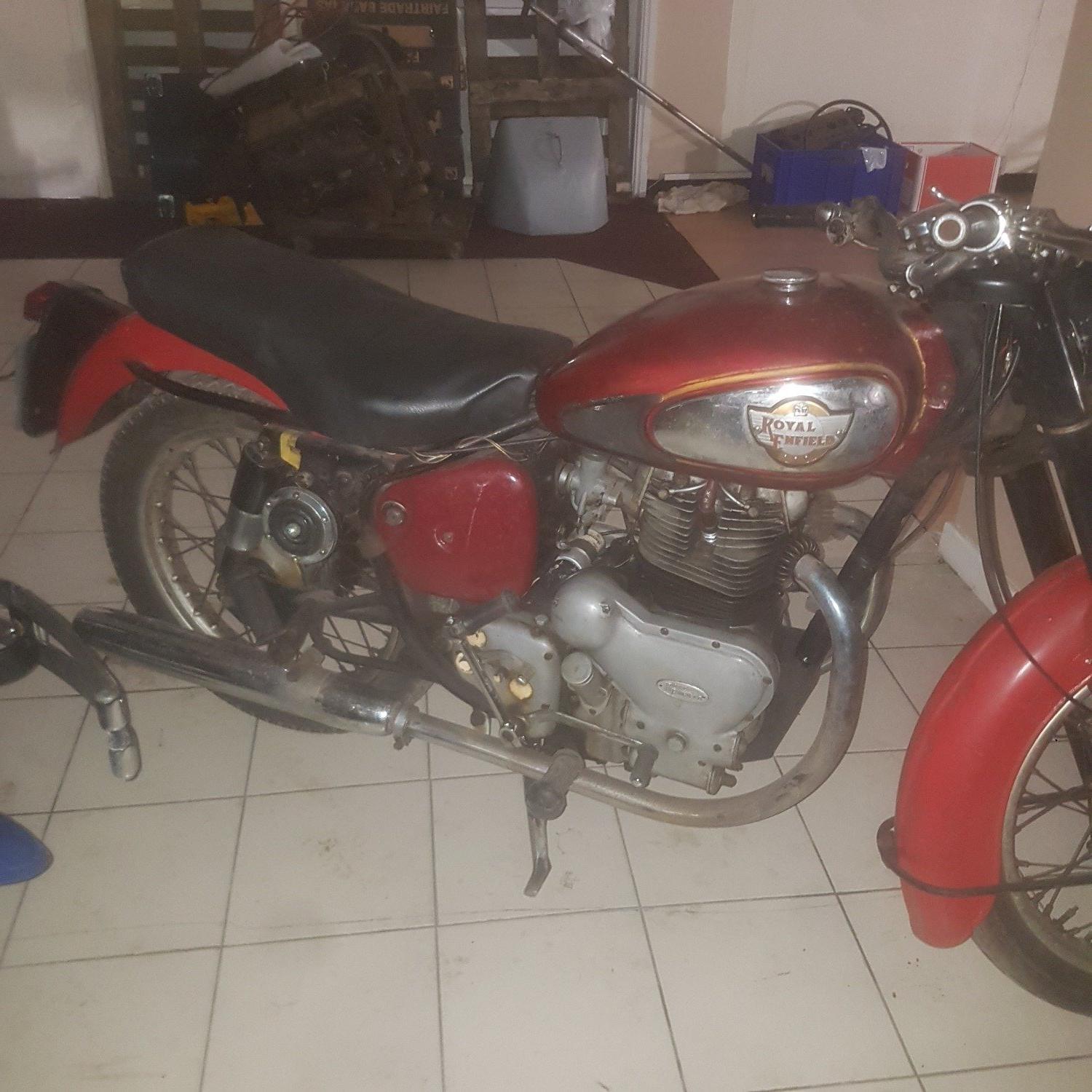 1959 Royal Enfield Constellation 700cc twin...............fabulous bike , easy to kick and delightful to ride..............very good un-molested condition, mud guards could do with some paint, complete with original pannier frames and satchels along with ex factory fly screen. Plenty of spares and a new front tyre are included. A good file of invoices tax discs etc complete the package. Number is transferable and very valuable..........