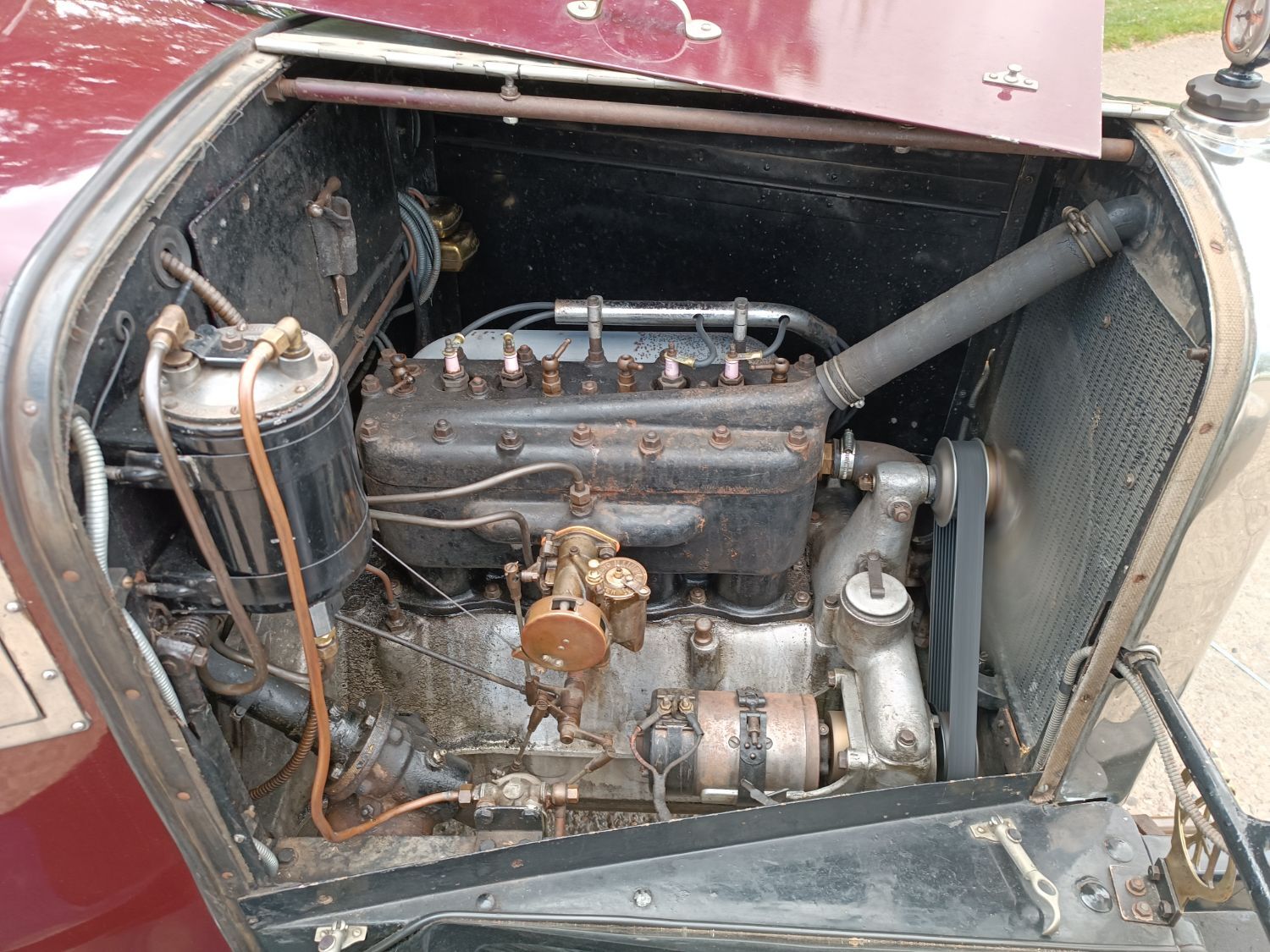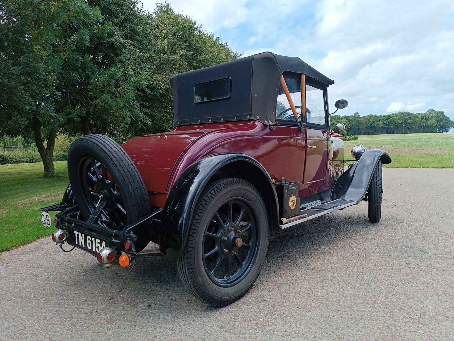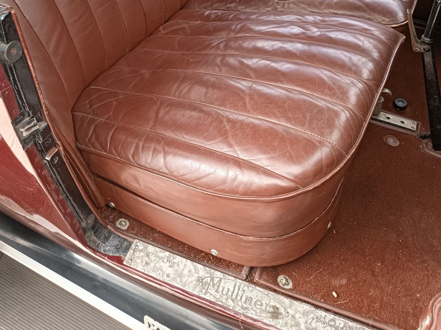The car is smartly presented in maroon with deep red leather upholstery and has full weather equipment in excellent condition including hood and sidescreens. Instrumentation and running equipment are correct and period even down to the original clock that swings out of the dashboard to be wound-up. It starts first time of asking and runs and drives exactly as it should.