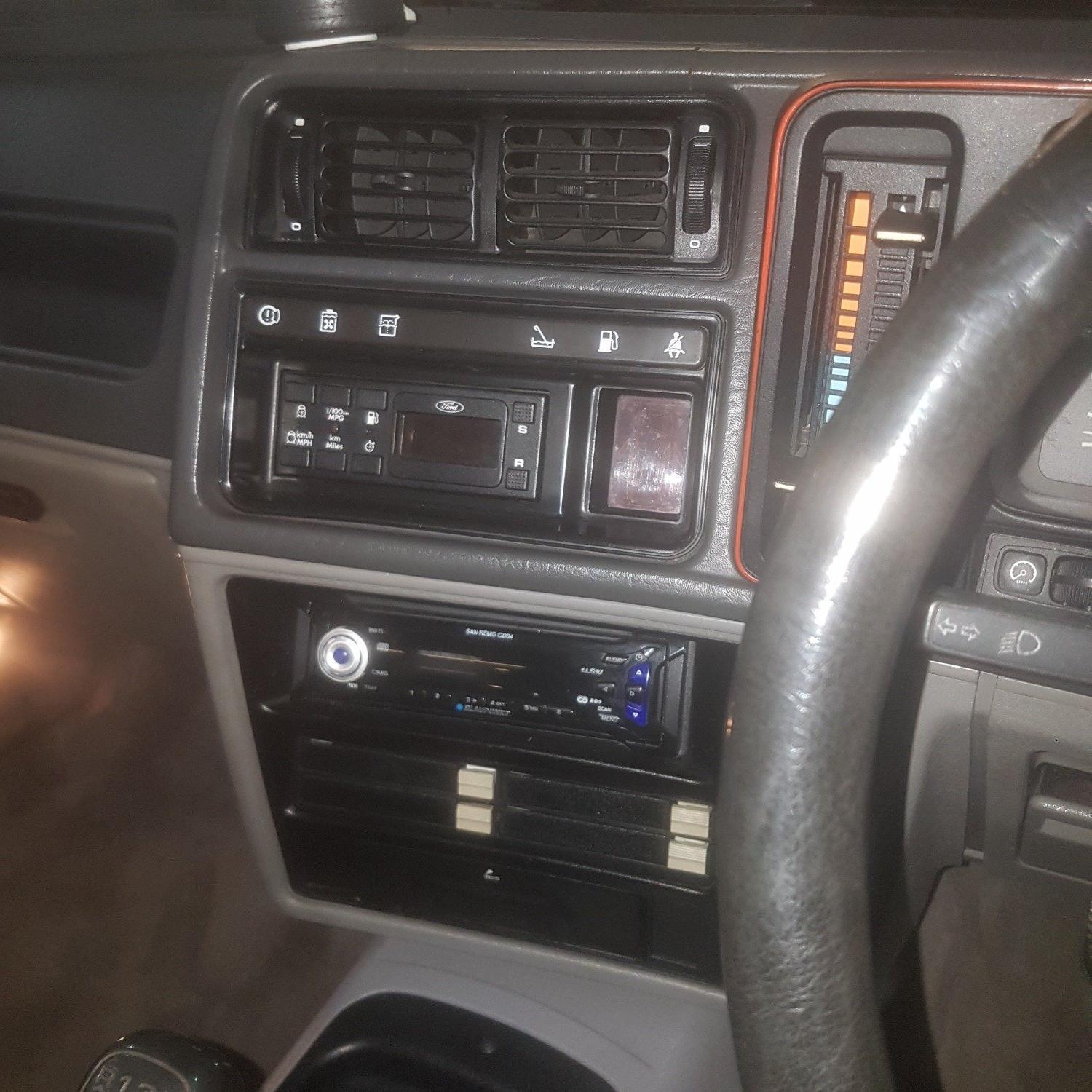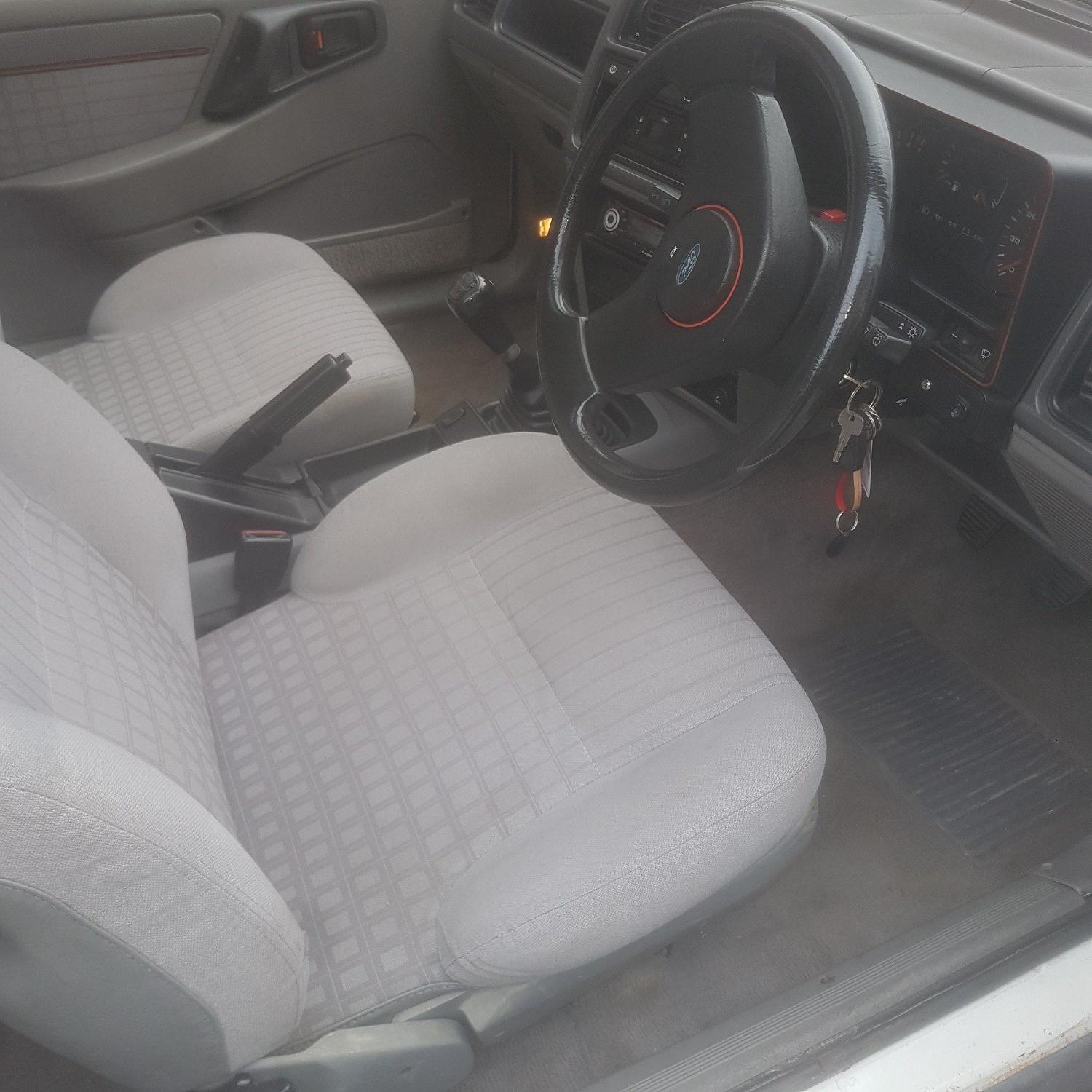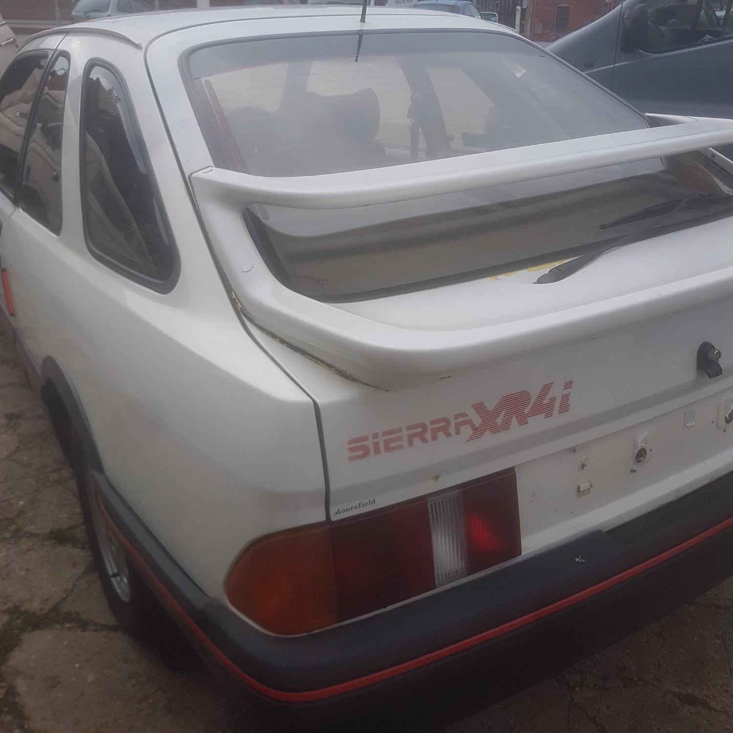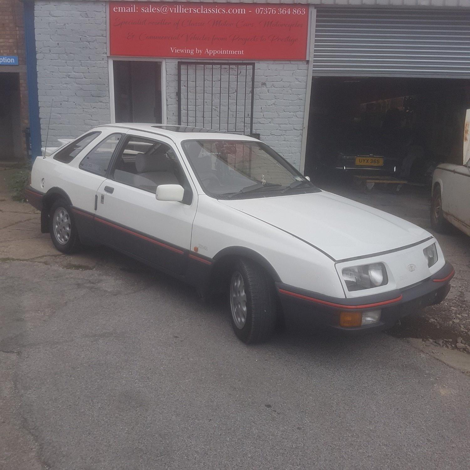 1983/4 XR4i presented in white and only 130000 miles from new. A good looking car in the colour needing some remedial works to the body and obviously well looked after, a substantial history file including MOT certs from 1988 and rebuilt engine at 66000. Superb un-molested interior, other than cracks to the dash top. The car is fitted with PAS, Central Locking, Electric windows and Sunroof.