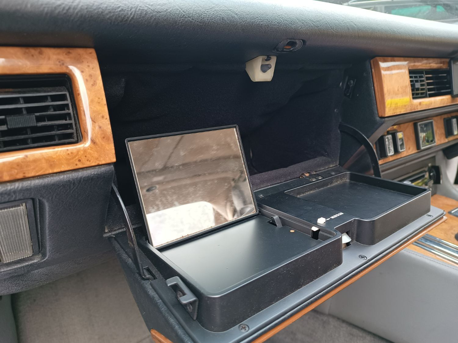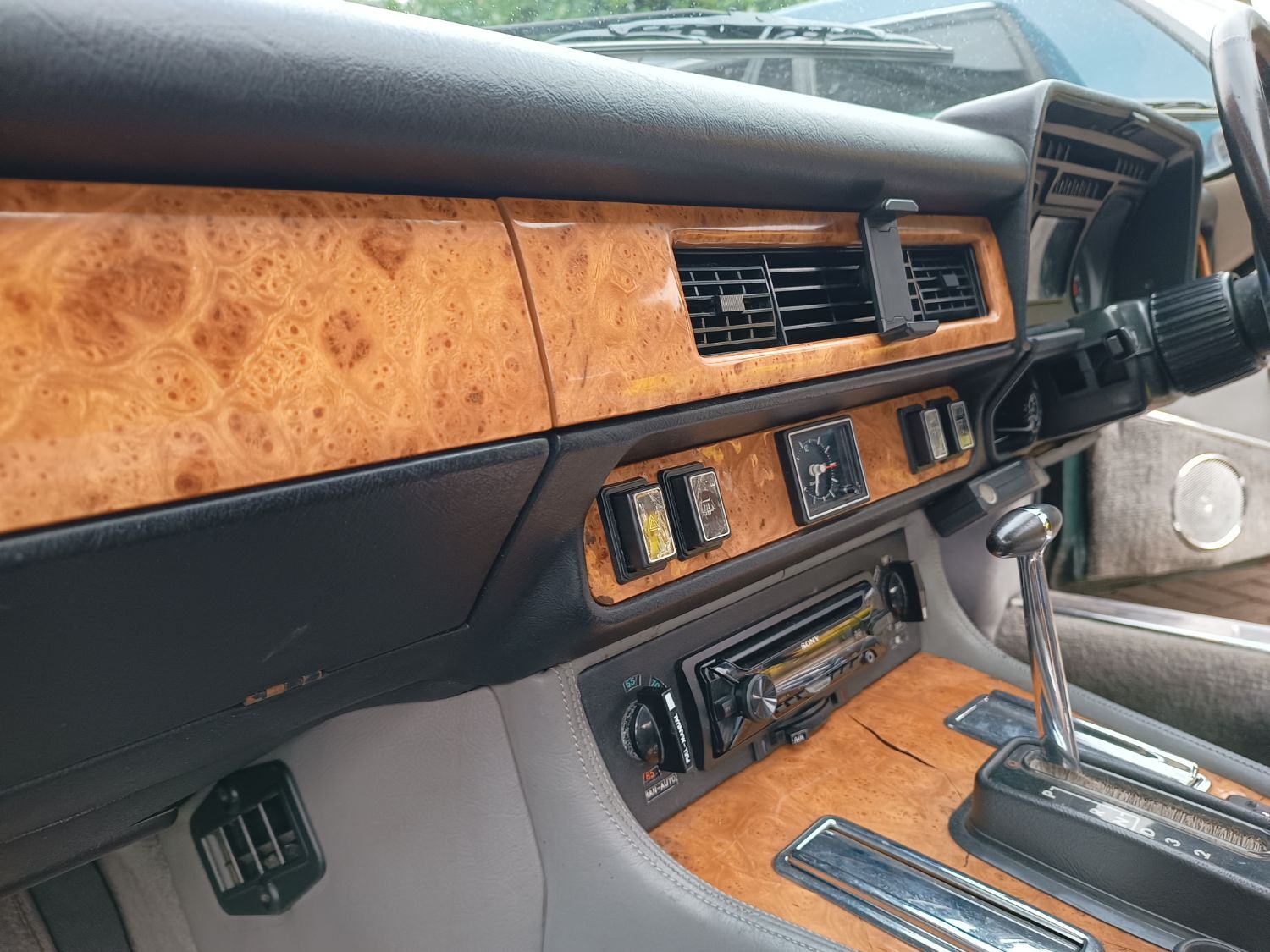 Unlike many, this XJS’s electrics are all in good working order and none of the dash warning lights stay illuminated after start-up (which, by the way, is on the button every time). The original radio is boxed-up in the boot having been replaced with an aftermarket Sony unit which includes CD and Aux-in functions.