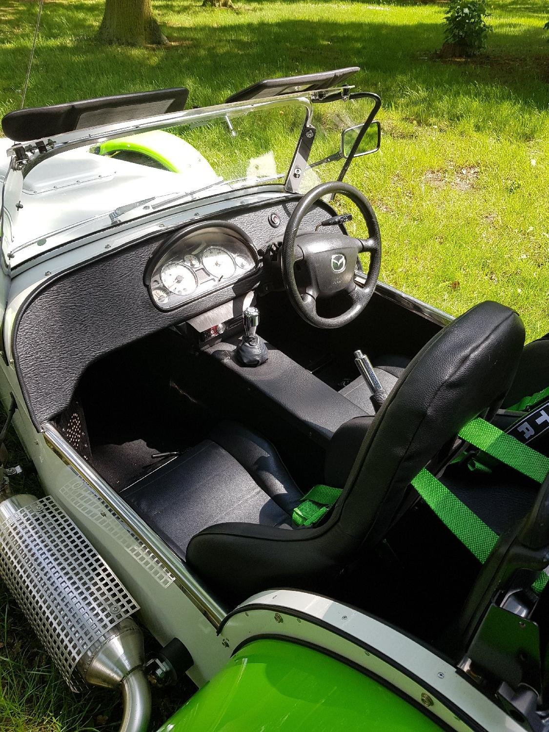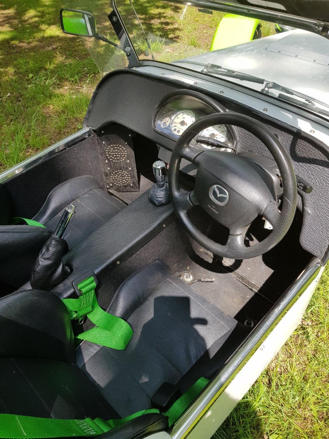 This car is powered by a Mk2 Mazda MX5 1.8i engine with bespoke wiring and refinements to deliver 174bhp at 5800 rpm, an impressive 25% gain over the standard unit. With a gross weight in the region of 550kg this car will take you from 0-60 in just over 4.5 seconds.