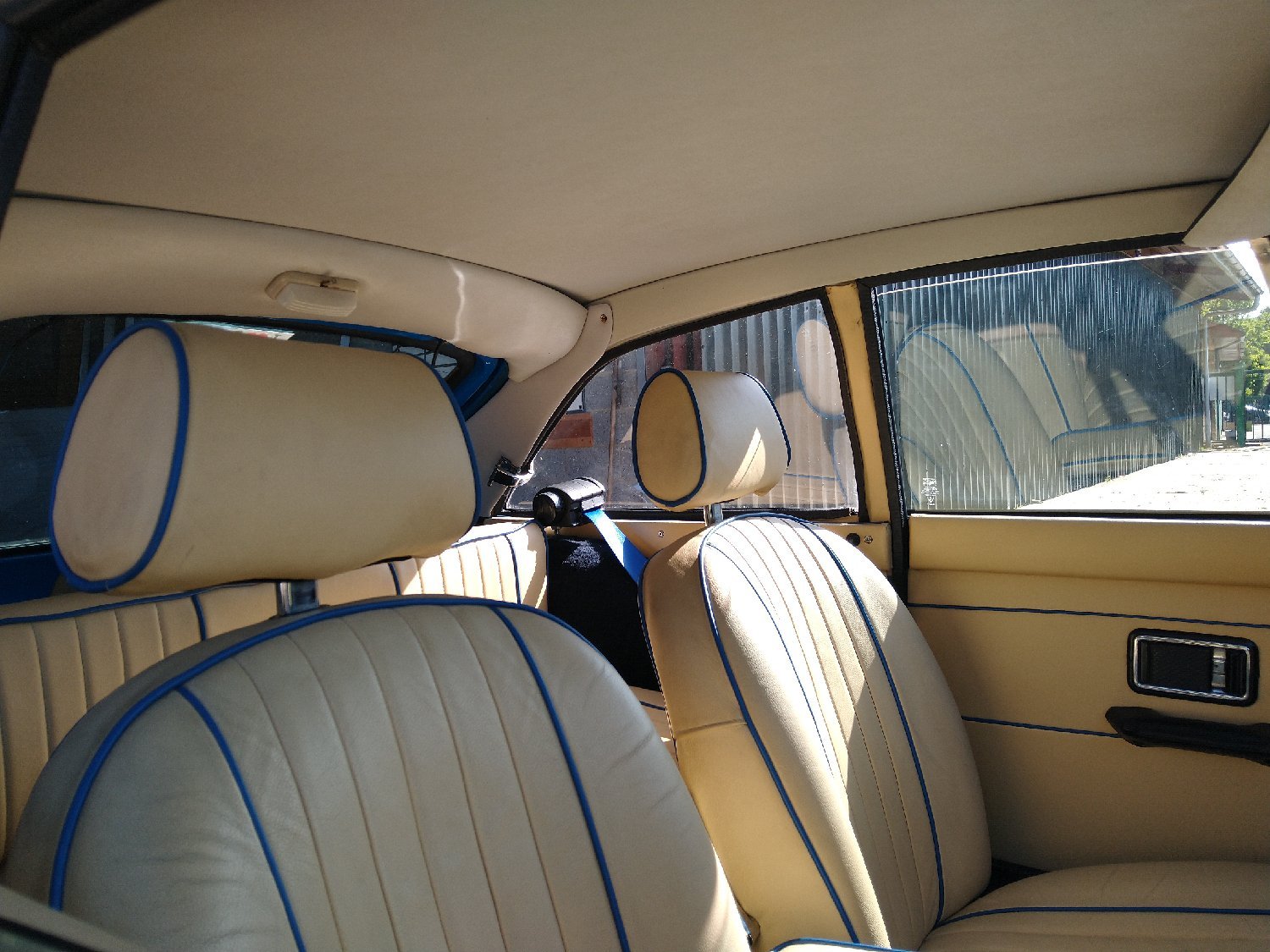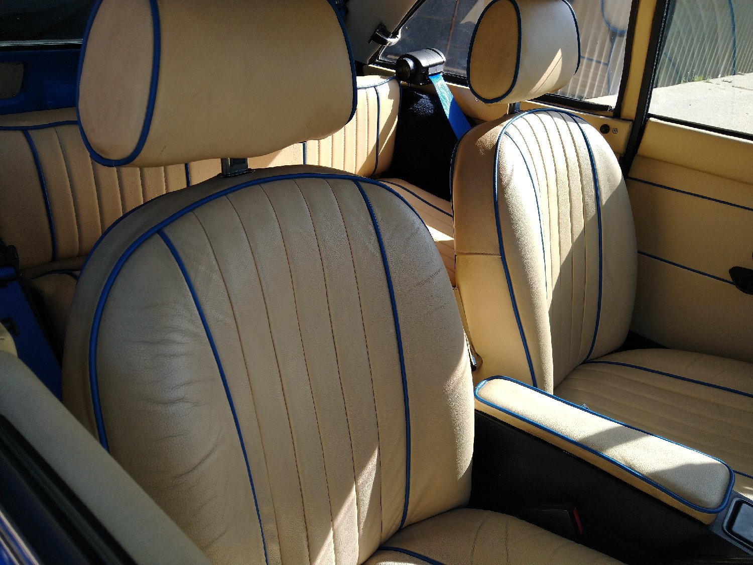 The cabin is set-off beautifully by the seats and doorcards in cream leather with blue piping...an unusual combination but looks great. A walnut rimmed MotaLita steering wheel and spotless headliner complete the look.