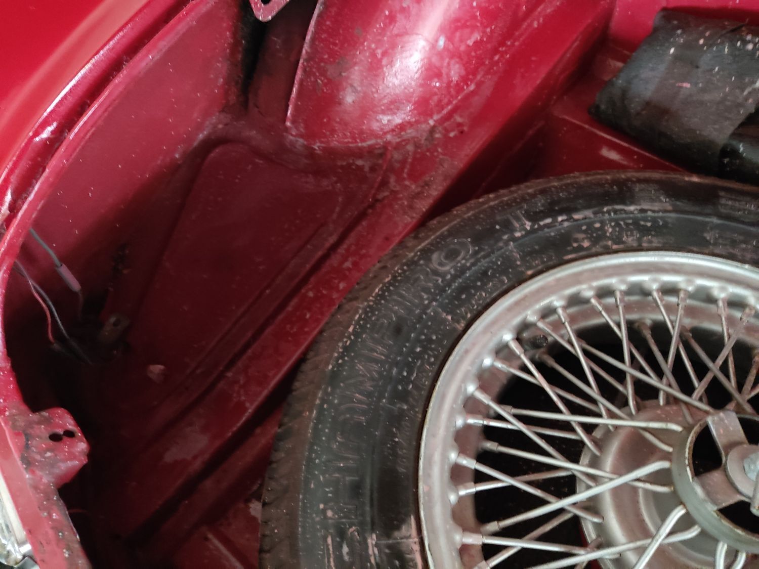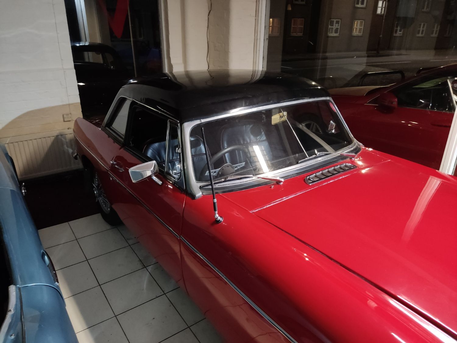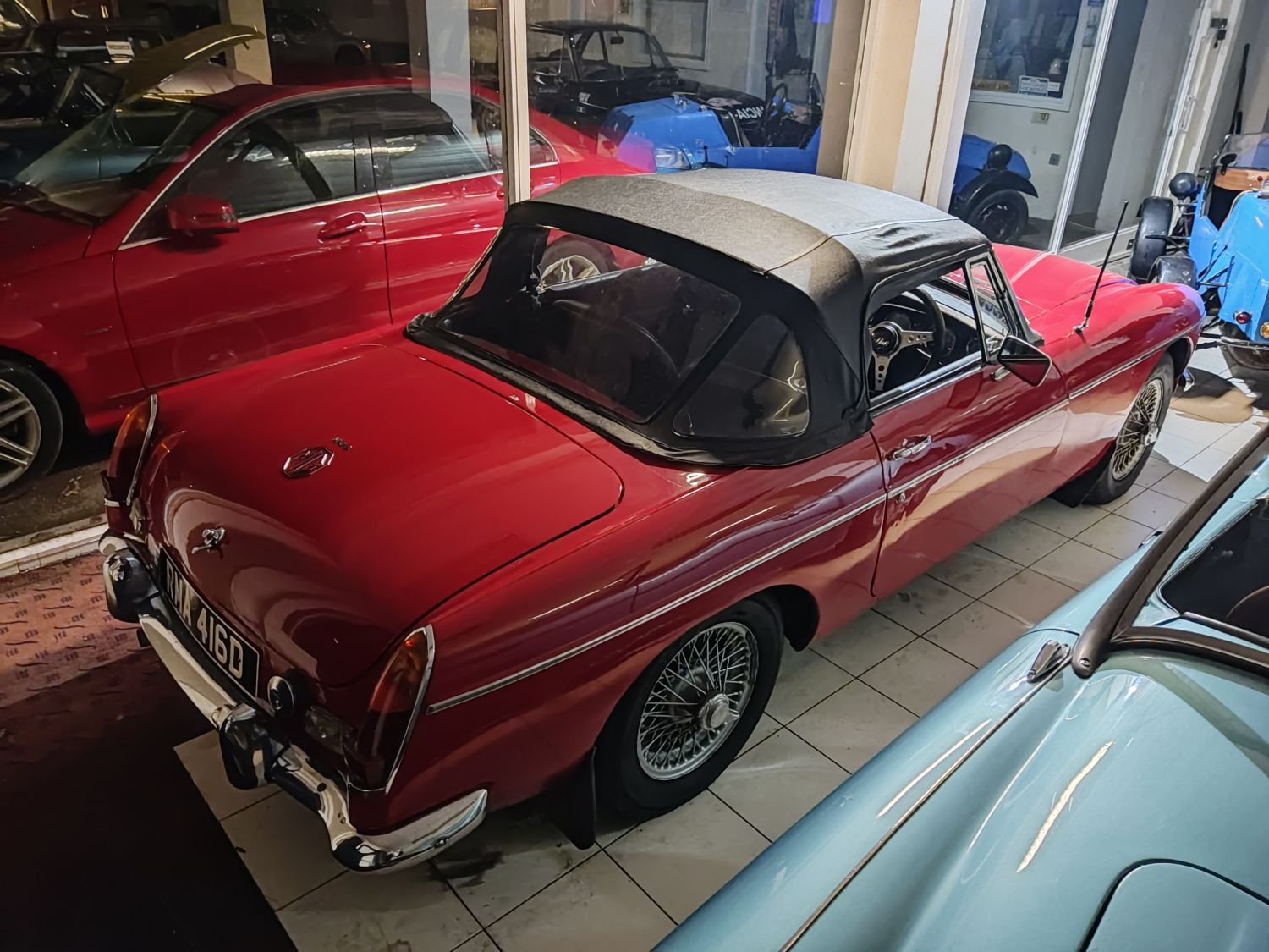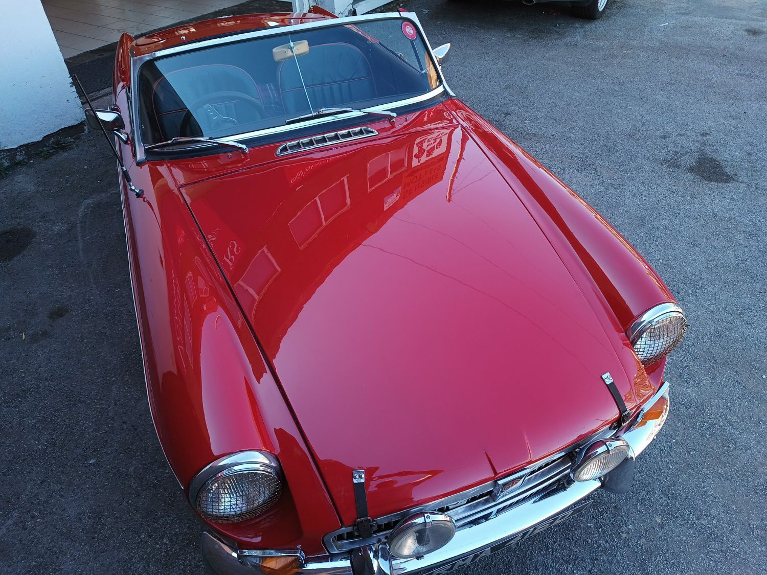 Body work is good and the paintwork still in nice condition and recently polished. All the shiny bits are shiny! The soft top appears to have had hardly any use and the black removable hard-top is in great shape and fits as it should. Inside is neatly trrimmed in black with red piping - all clean and tidy and free from rips or tears.