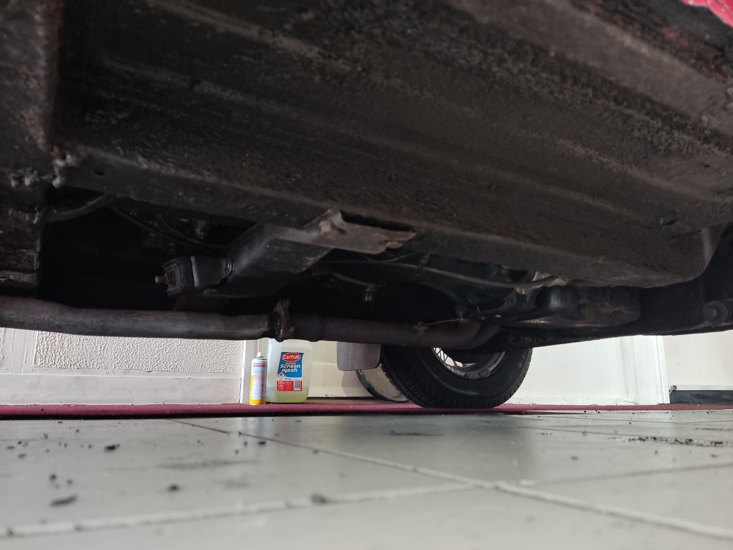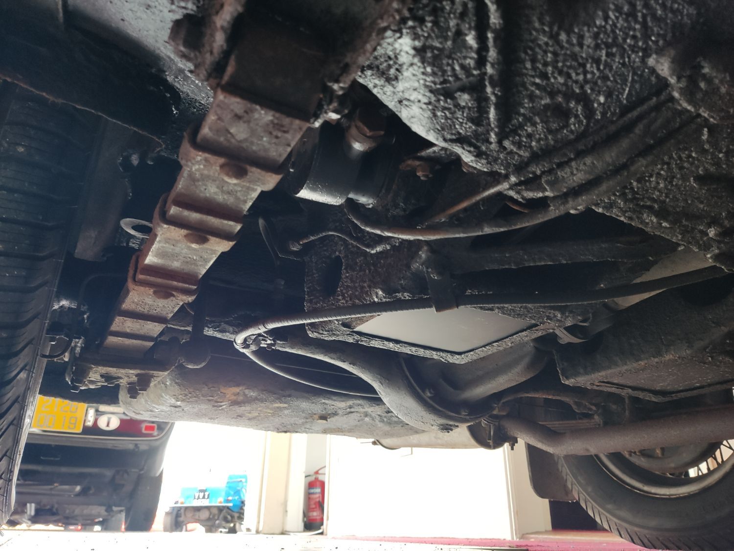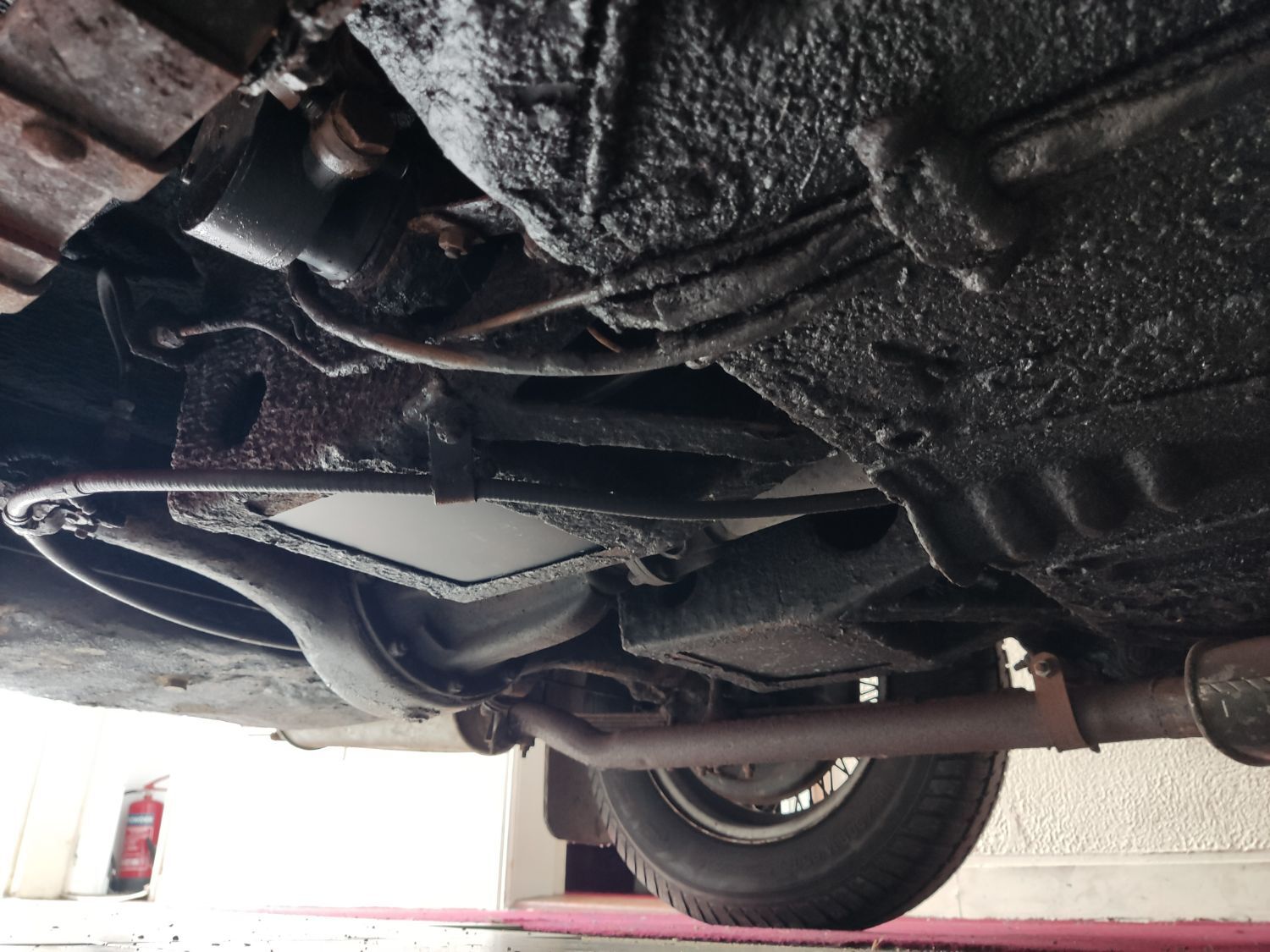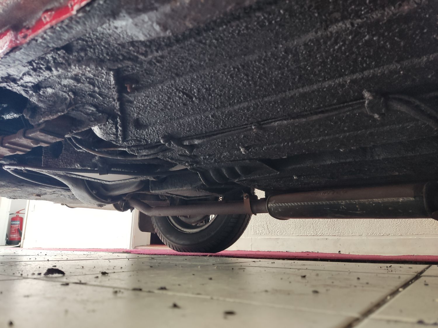 Body work is good and the paintwork still in nice condition and recently polished. All the shiny bits are shiny! The soft top appears to have had hardly any use and the black removable hard-top is in great shape and fits as it should. Inside is neatly trrimmed in black with red piping - all clean and tidy and free from rips or tears.