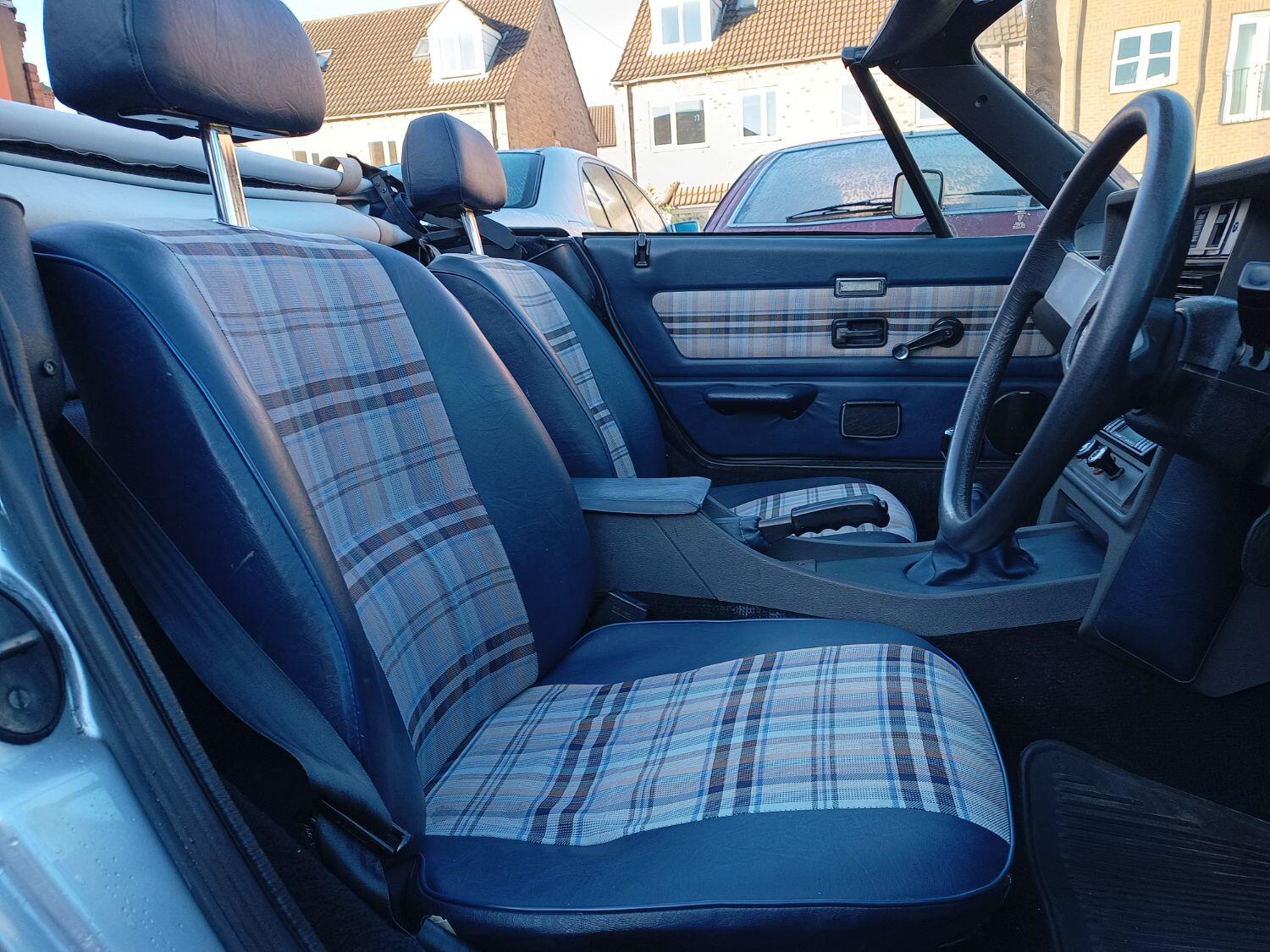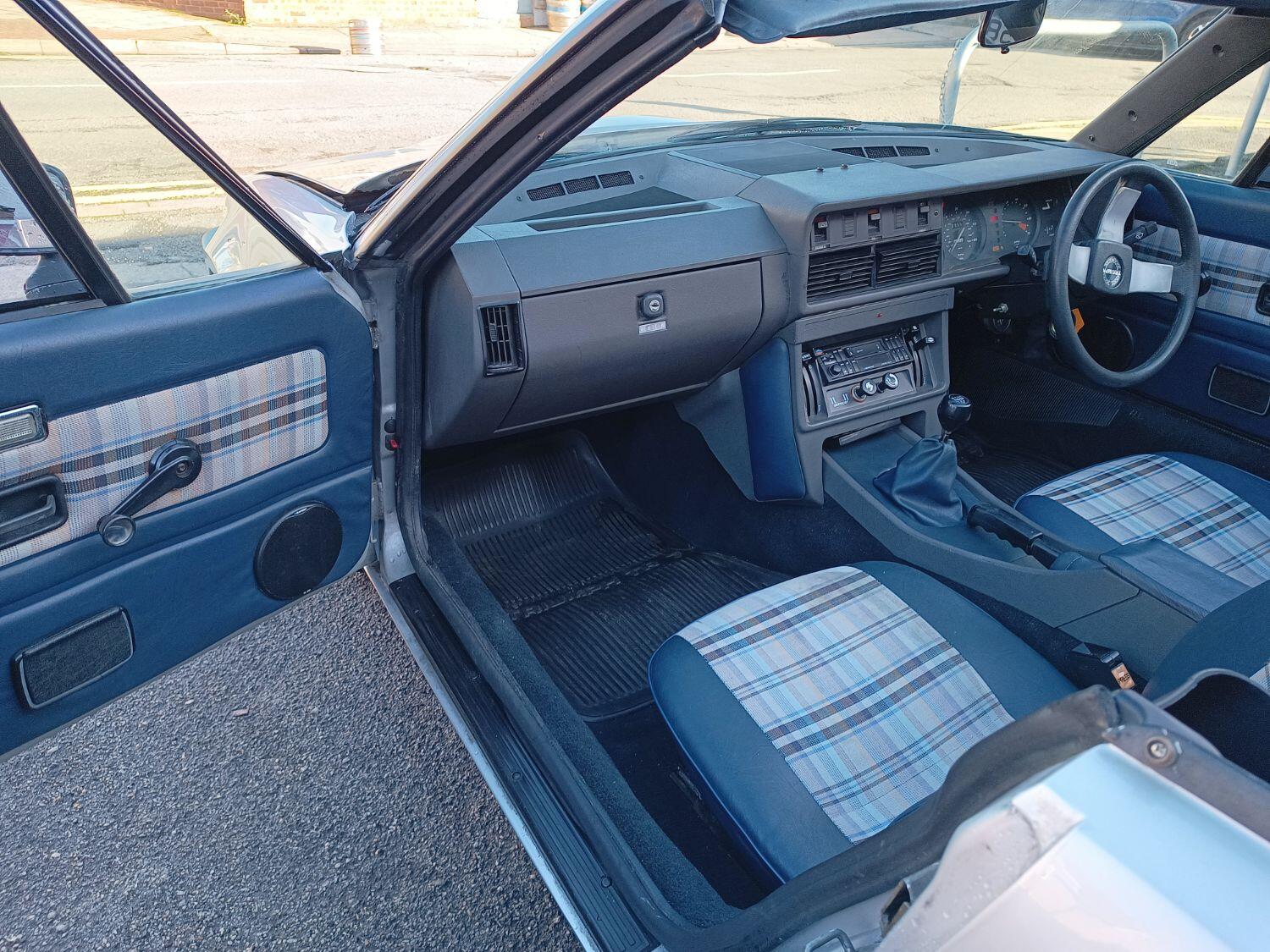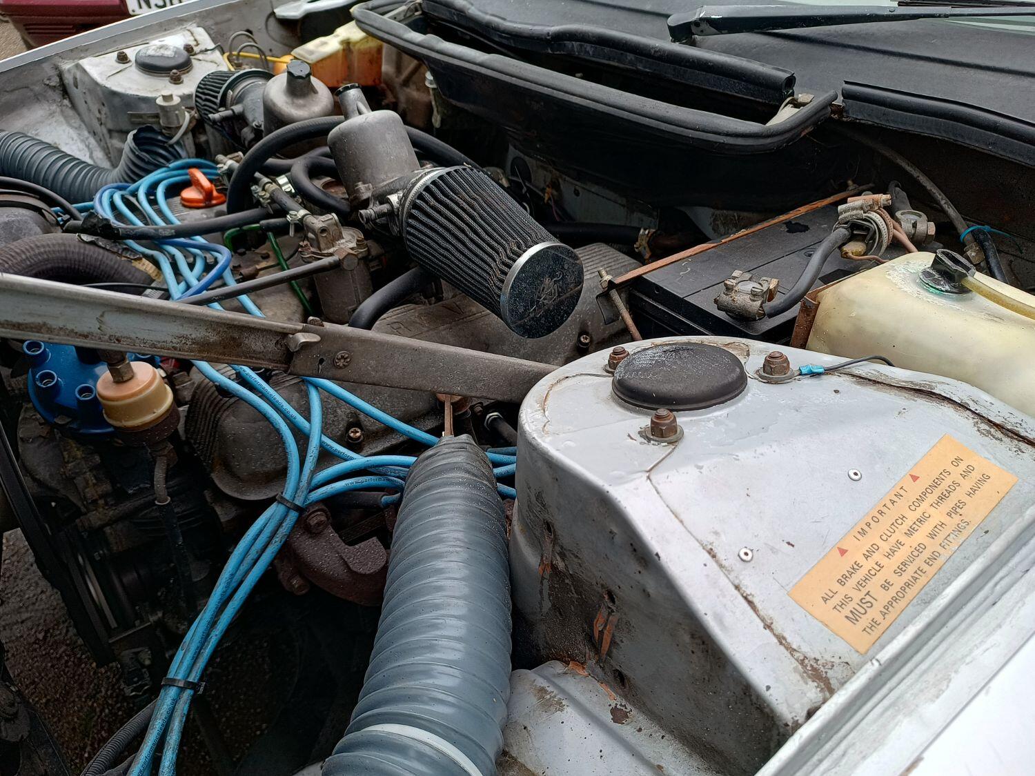 The car was painted in 2017 and retains an excellent finish all round with no marks or blemishes. The rear spoiler was sourced from a MG Montego Turbo and doesn’t look at all out of place. The blue vinyl hood is in very good condition and fits well with no missing buttons. It comes with a full tonneau set in black which, again, is in good condition. The boot and rear bulkhead are dry and rot free!