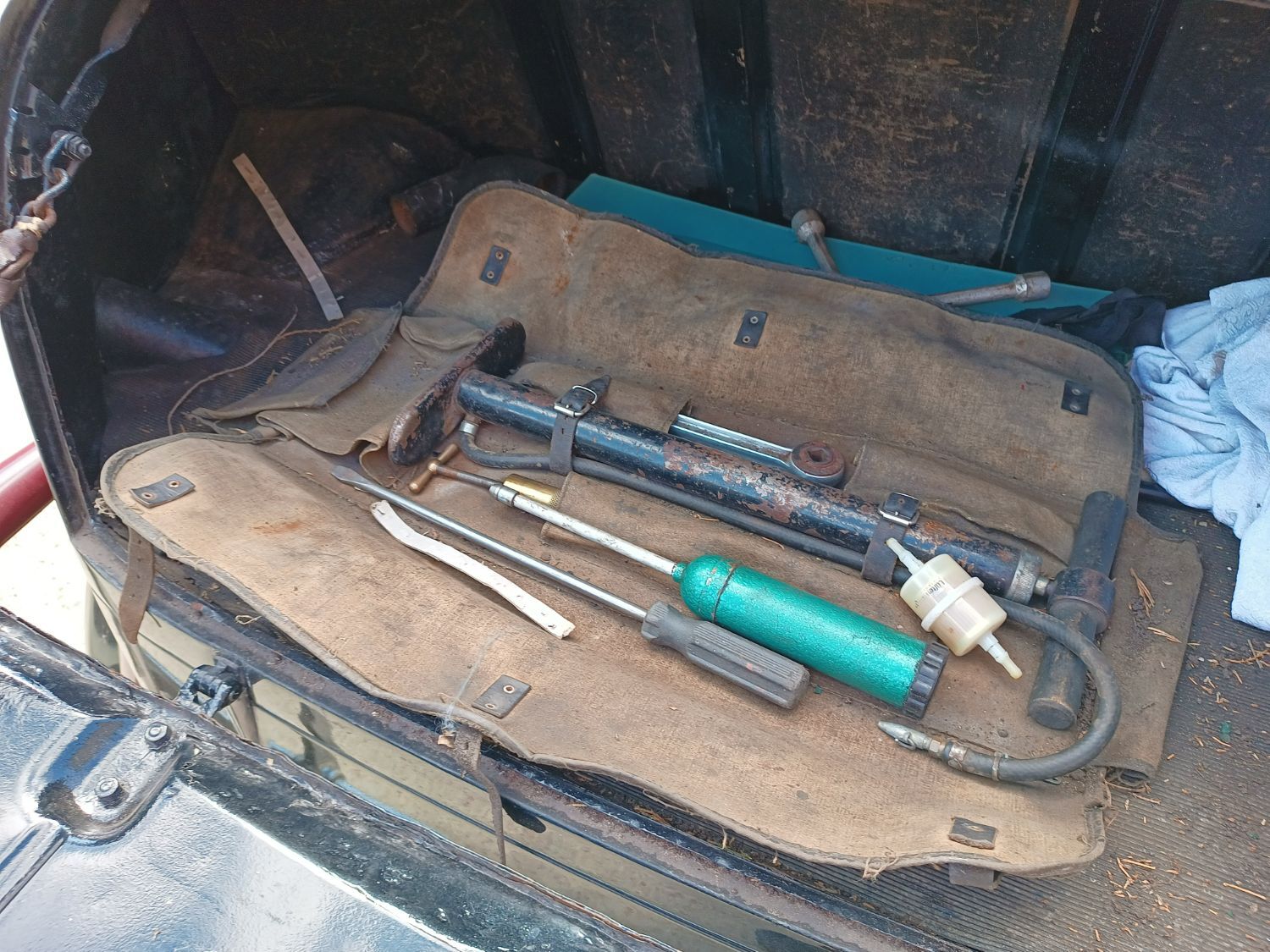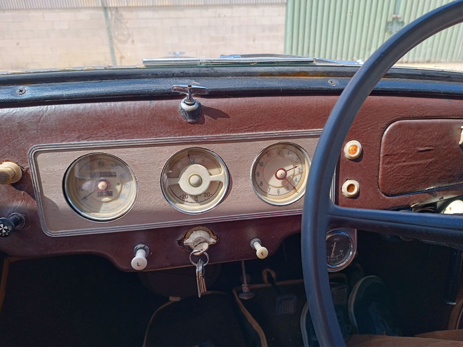 The result is a delight: the car is structurally very sound, the black and burgundy paintwork is good all over and the chromework solid and shiny. Inside is complete and in nice condition throughout. The leather seats may benefit from a feed but nonetheless have a lovely patina (we suspect the front seat isn’t original as these cars were fitted with separate driver and passenger chairs rather than the current bench configuration). The headlining, door cards and carpets have been renovated as part of the works mentioned above and are in very good condition. The dash is complete with all the gauges apparently working as they should.