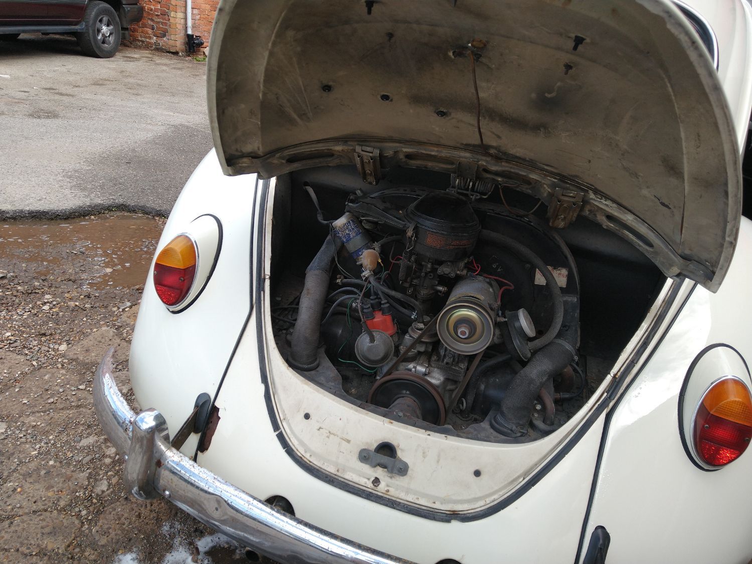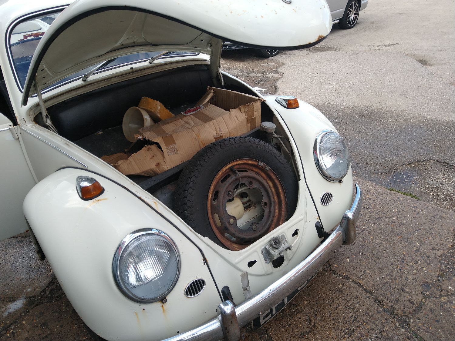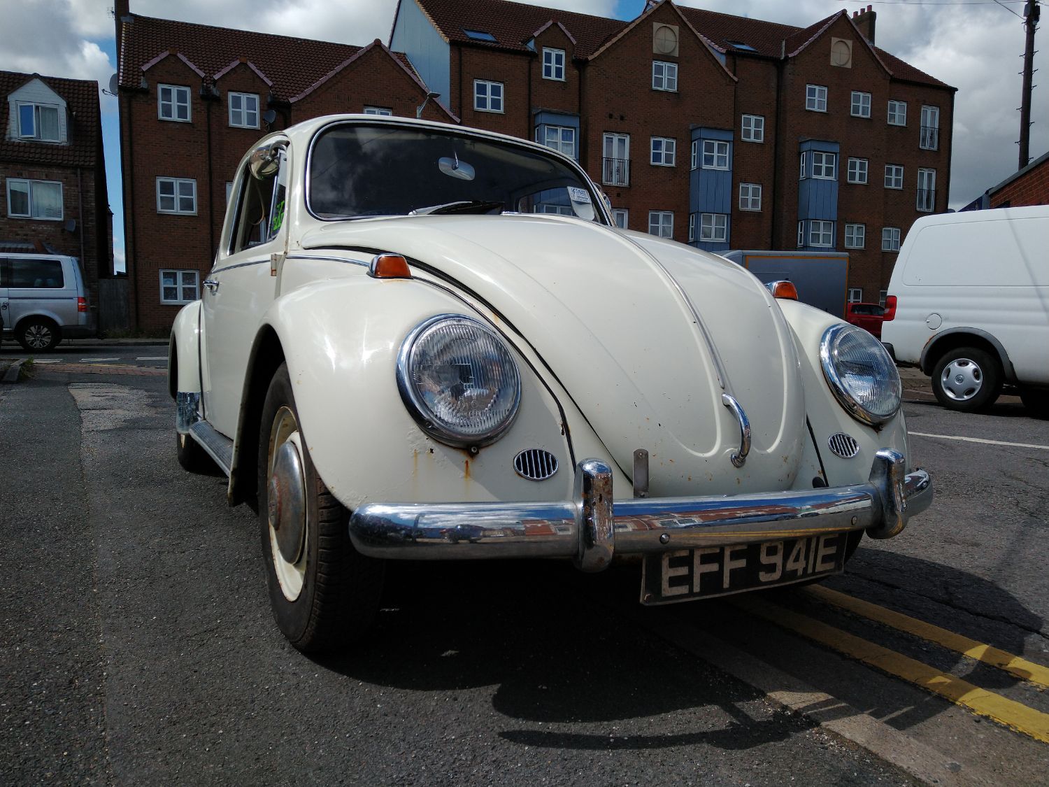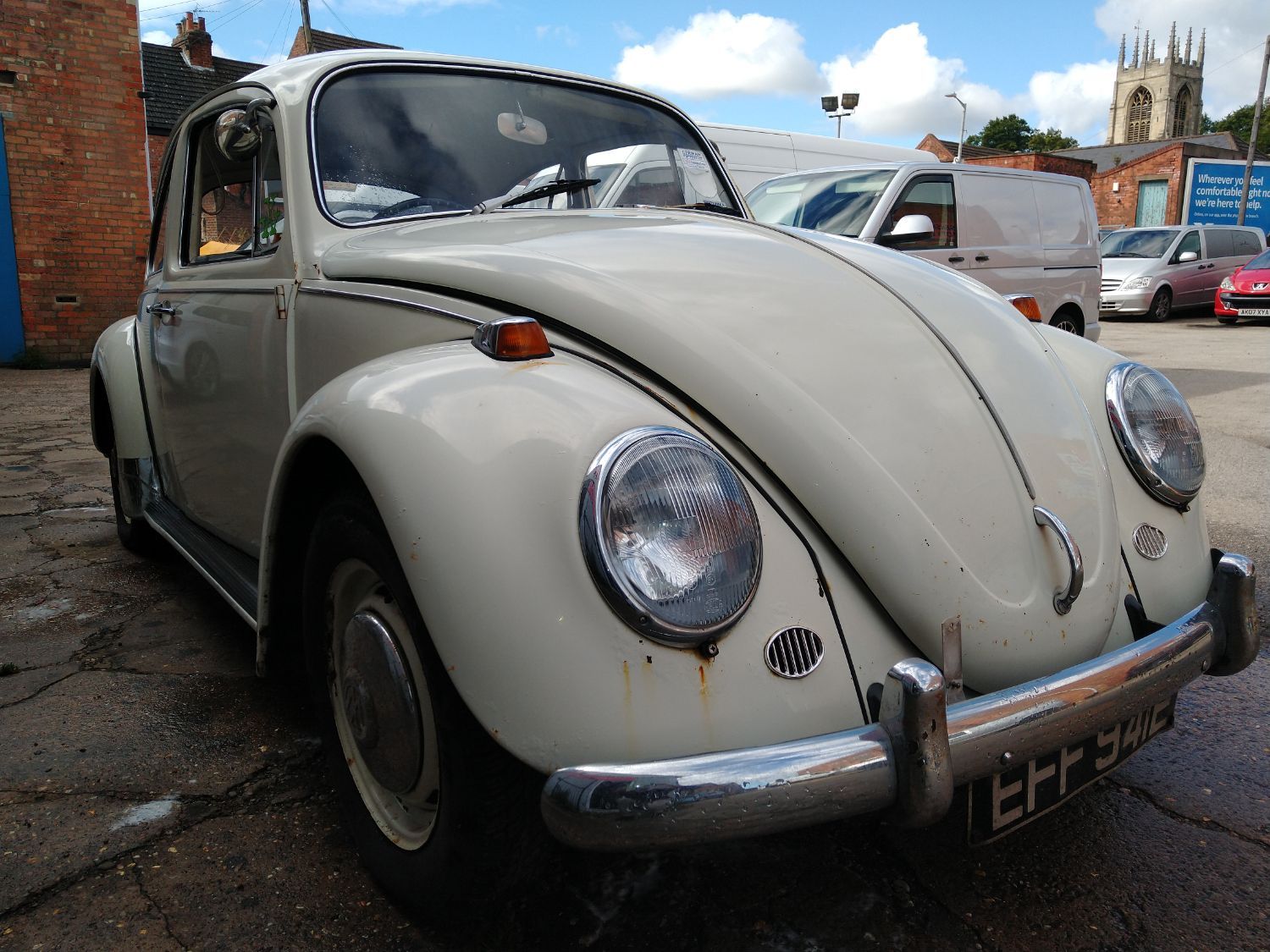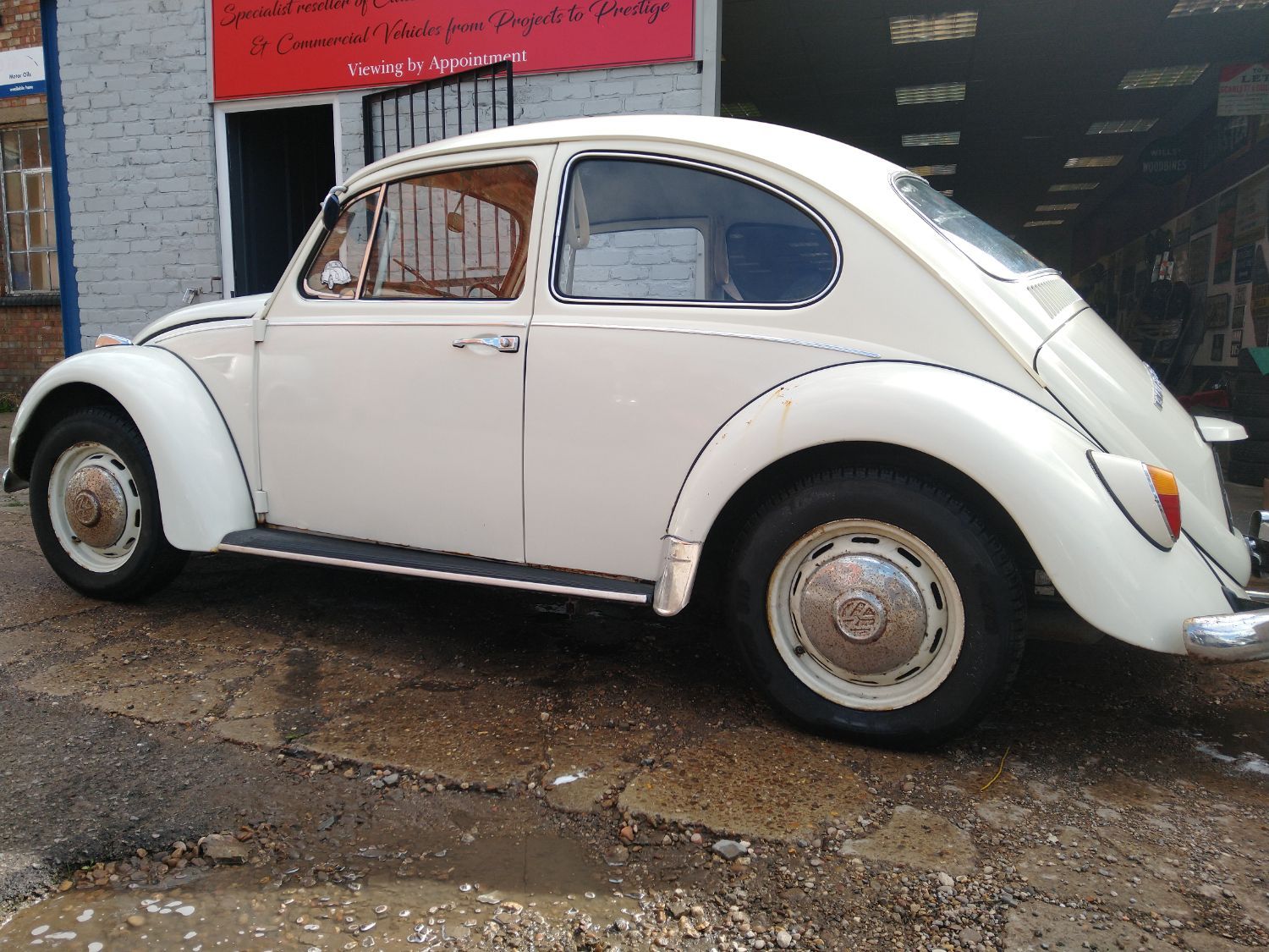 A delightful type 114 Beetle in Pearl White....this car is one of a limited production run bridging 1966 - 1967: the engine lid (rear) is an ‘intermediate’ shape, slightly flattened-off over the registration plate area. This was a departure from the fully-rounded rear shape of models up to 1966 and models from 1967 onwards featured a fully squared-off rear shape.